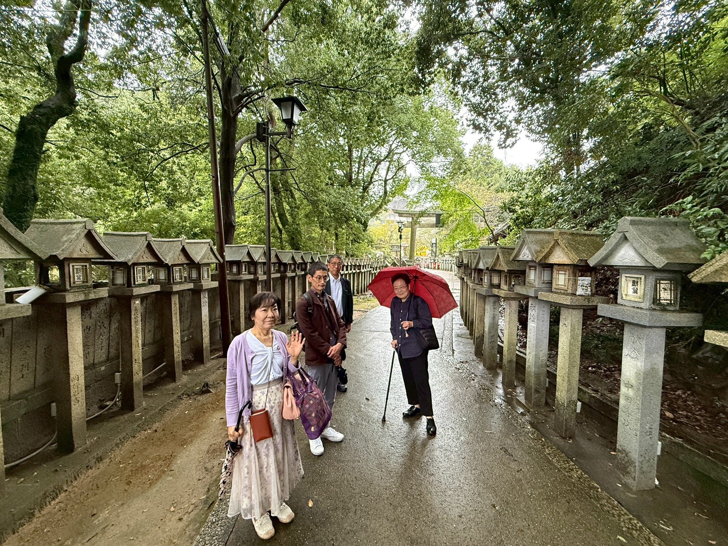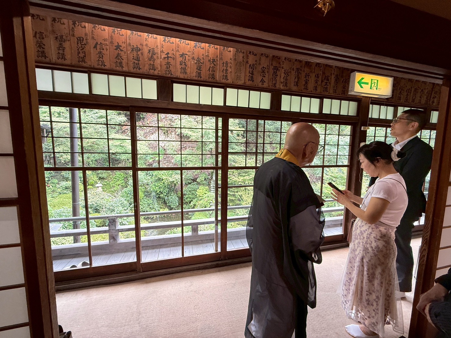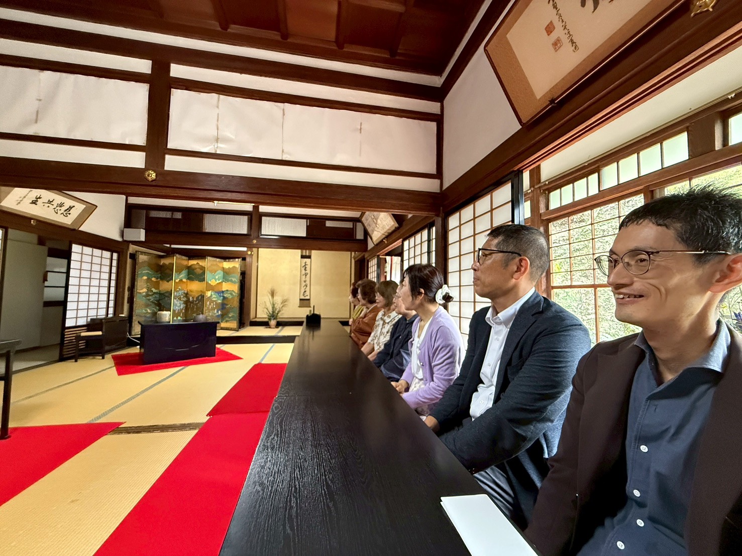 毘沙門天王の総本山・信貴山朝護孫子寺で10月5日(日)、「仲秋茶会」が催され、早稲女会のメンバー2人と、男性校友4名が参加しました。「釈迦院秀寛庵」住職の田尾秀寛先輩を導師に、千手院、玉蔵院、成福院に用意された三つのお茶席を巡りました。