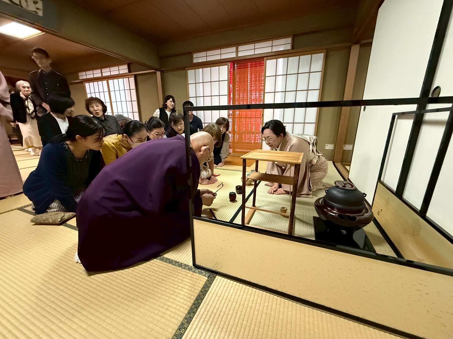 今回は、田尾先輩のご友人の裏千家師範も同道され、お茶席の流れに沿って懇切丁寧なご指導をいただき、大変勉強になりました。また、松尾流茶席では奈良の裏千家重鎮のご婦人がお正客を勤められました。あたたかな心遣いと気配りに「これぞお正客のお手本」を目の当たりにすることができ、感動いたしました。田尾先輩には、今年も大変お世話さまになりました。得難い経験をさせていただきまして、ありがとうございました。
